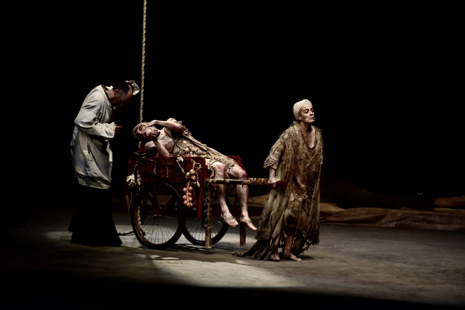 Lo trágico, lo dramático, lo cómico y lo grotesco se aúnan en esta tragicomedia. Donde es evidente la influencia de Goya y sus Pinturas negras, de los Disparates, de los horrores de la guerra. Y también evidente la influencia de Solana, Dalí y de toda una corriente española que llega hasta nuestros días –con Buñuel a la cabeza– en una auténtica sinfonía de colores, sonidos y sentimientos.